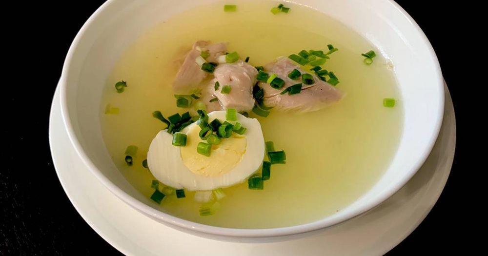 Бульон куриный, мясо курицы, яйцо куриное отварное