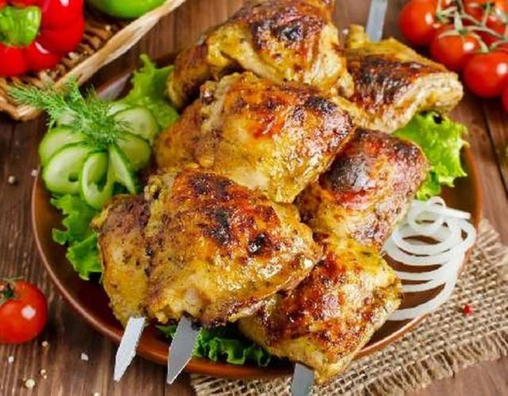 Бедро куриное, хлеб ржаной, кетчуп, лук репчатый свежий